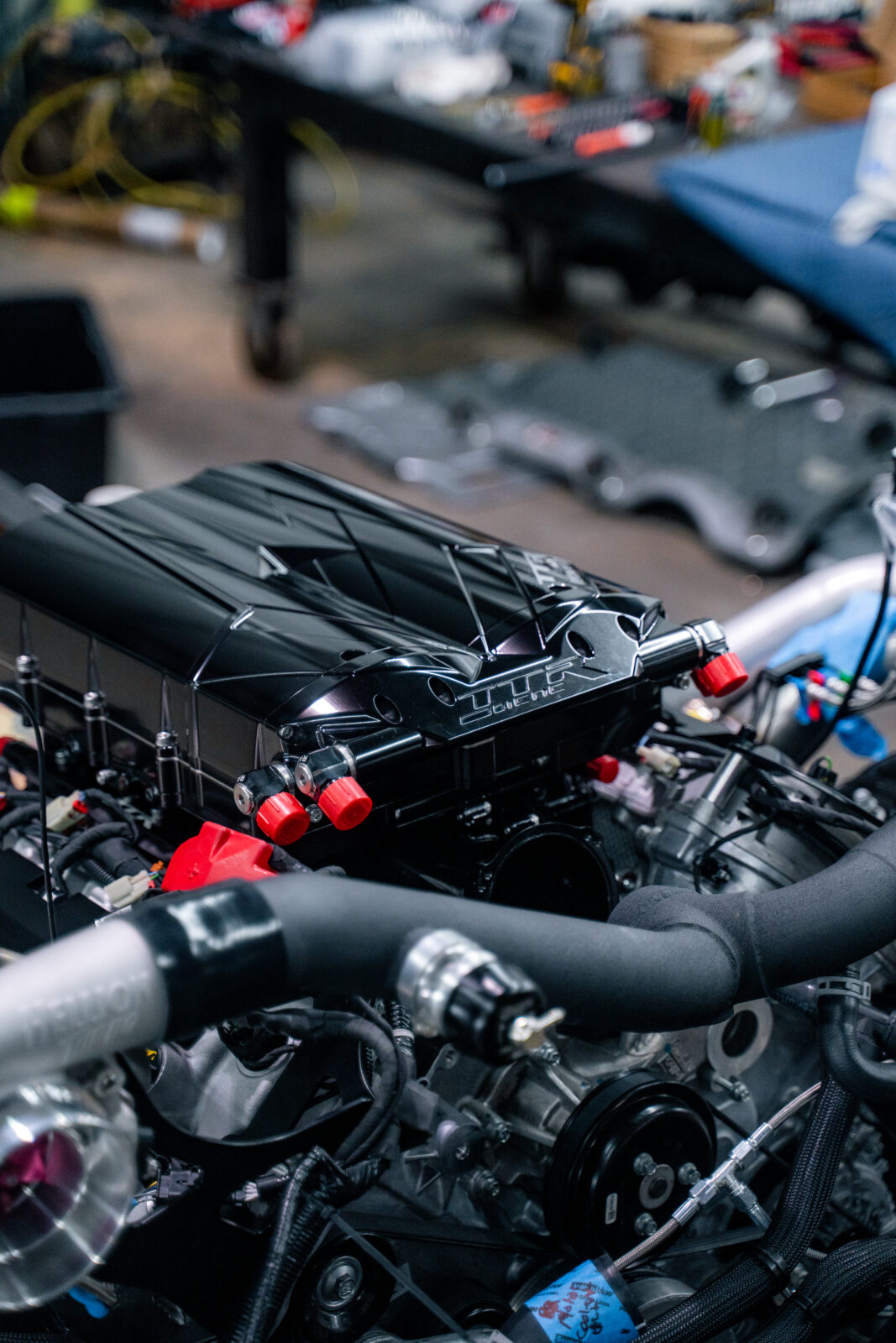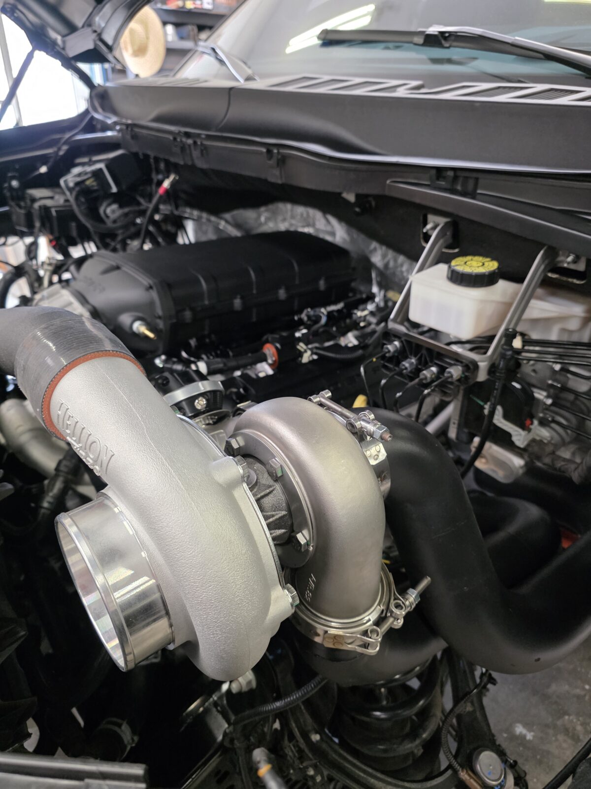 We have spent hundreds of hours designing the finest possible Top Mount kit for the Raptor R. This system solves the issue of having hot downpipes next to the engine, as the piping is cleanly routed away from the center of the engine, allowing full access to spark plugs and other components. Installation can be performed by anyone with automotive mechanical knowledge or at a performance shop. The base system is a tuner kit and will require tuning and injectors. Hellion has a network of trusted shops that can be recommended upon request.