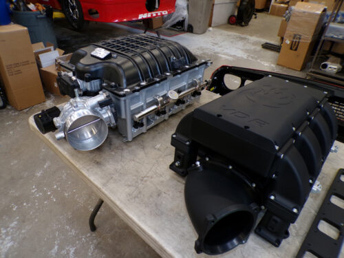 The design of this system works by keeping the factory supercharger installed and adding twin turbos. We turbocharge the inlet of the blower with a factory looking intake pipe with a serialized DEMON 170 production number! This is the first stage of boost. The supercharger then creates the second stage and boosts the engine with a compounded total. Example: 3 psi springs in the wastegates make 3 psi before the blower and makes 14 psi overall at the engine. What this means is you can have the performance and feel of a supercharged monster with the boost adjustability of a true twin turbo kit – the best of both worlds. For those who are looking for twin turbo only, an aftermarket intake can be purchased and the system will plumb to the same spot–THE CHOICE IS YOURS!